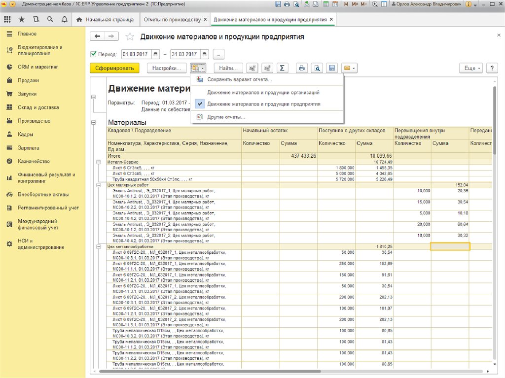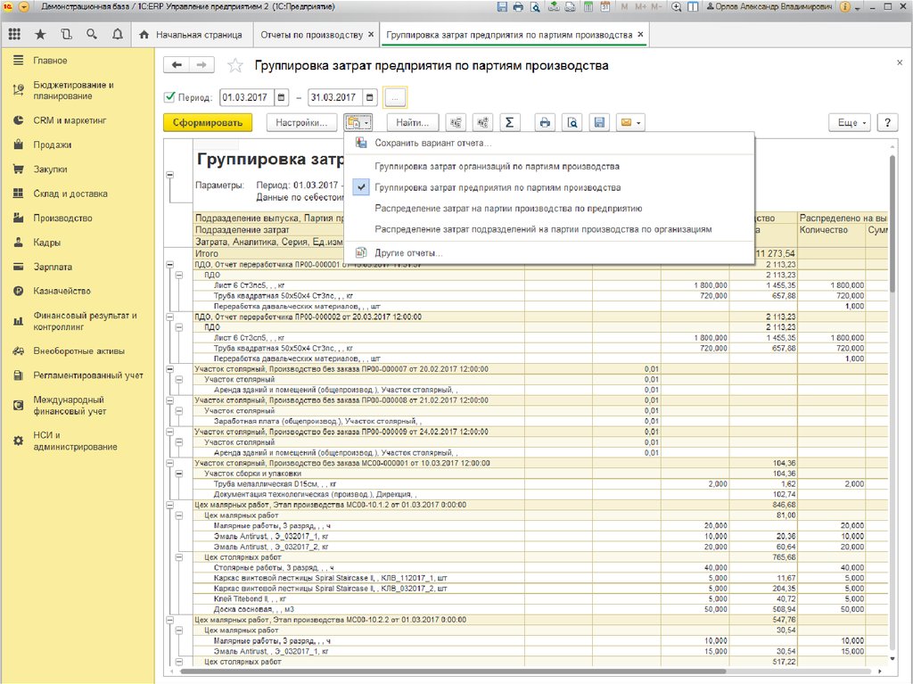Поддержать возможность формирования отчетов по производственнымзатратам по предприятию в целом и по организациям: