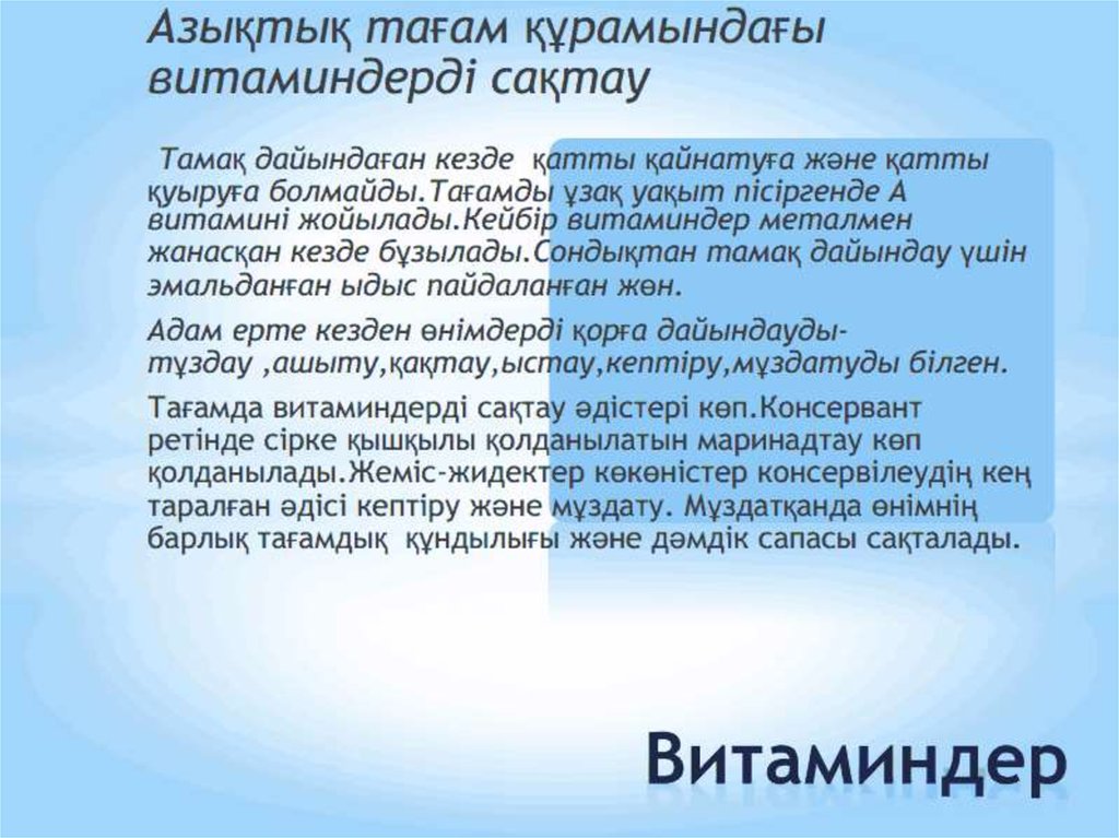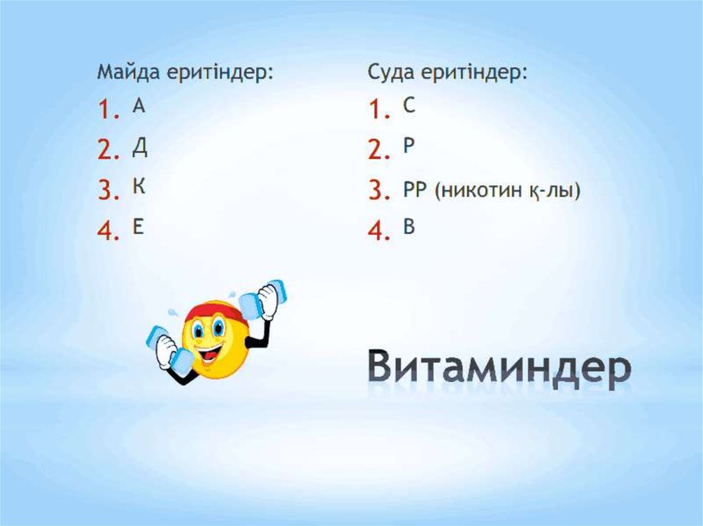 Витаминдер туралы жалпы түсінік. Майларда еритін витаминдер. Суда еритін витаминдер
