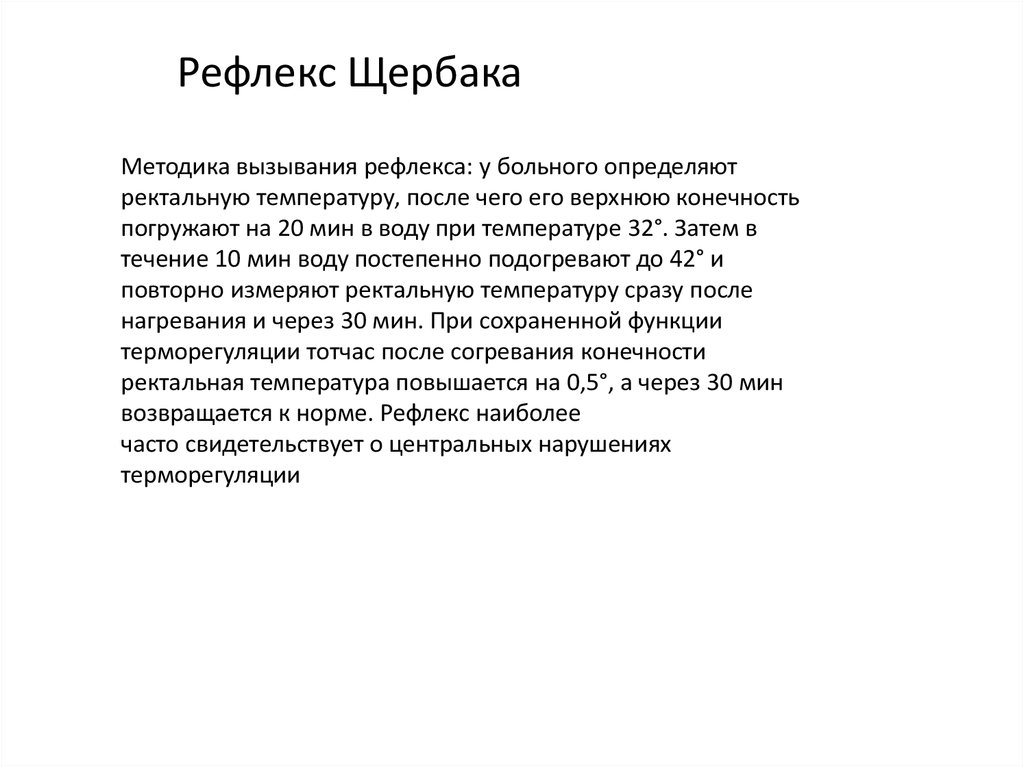 Рефлекс ЩербакаМетодика вызывания рефлекса: у больного определяют