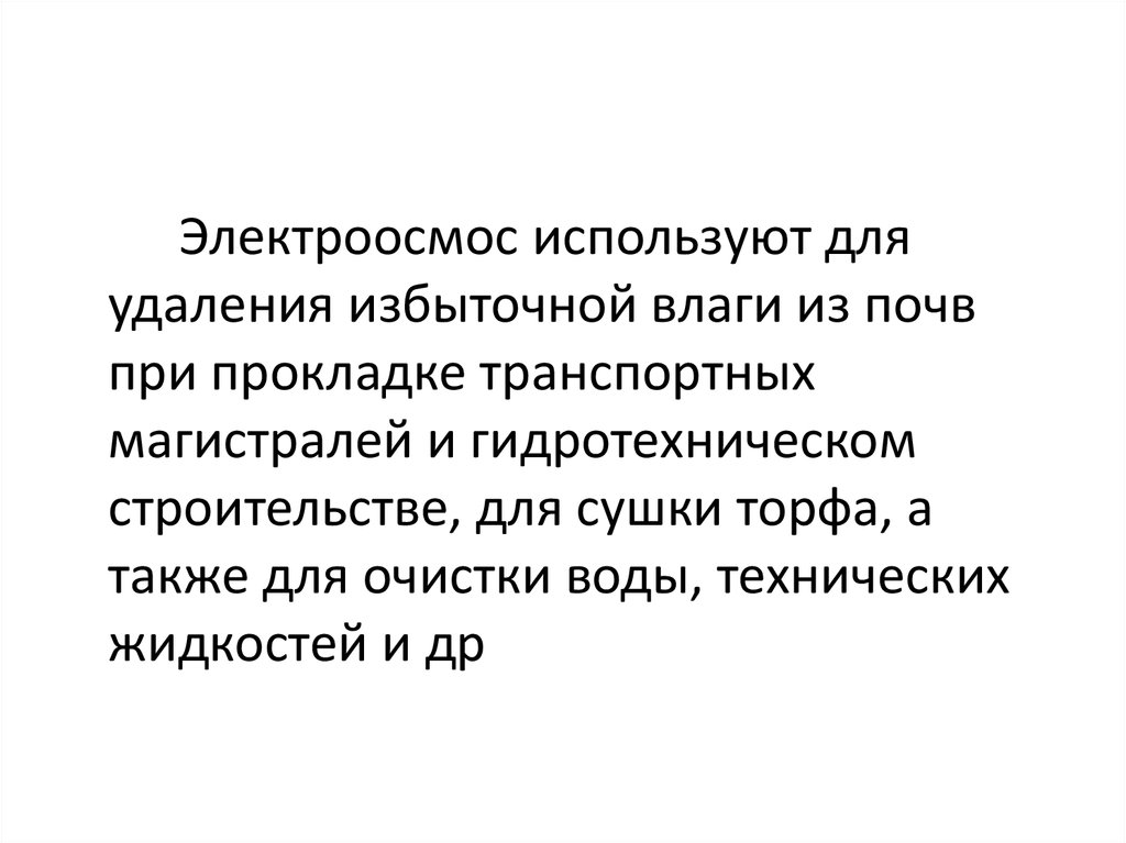 Электроосмос используют дляудаления избыточной влаги из почв