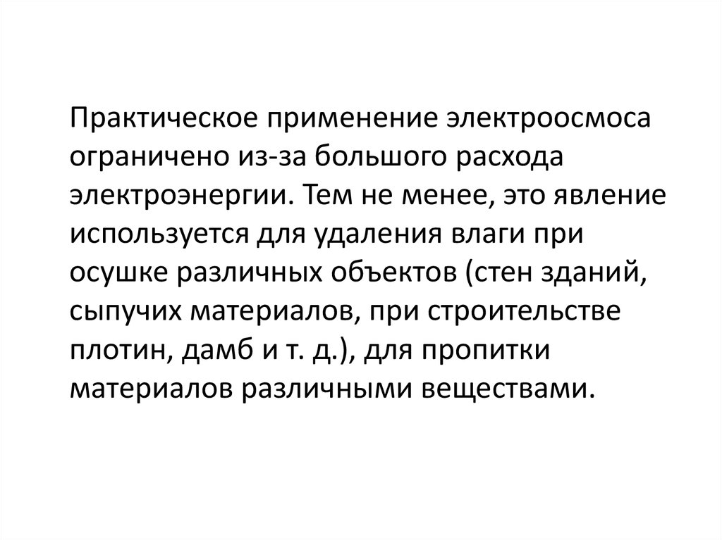 Практическое применение электроосмосаограничено из-за большого расхода