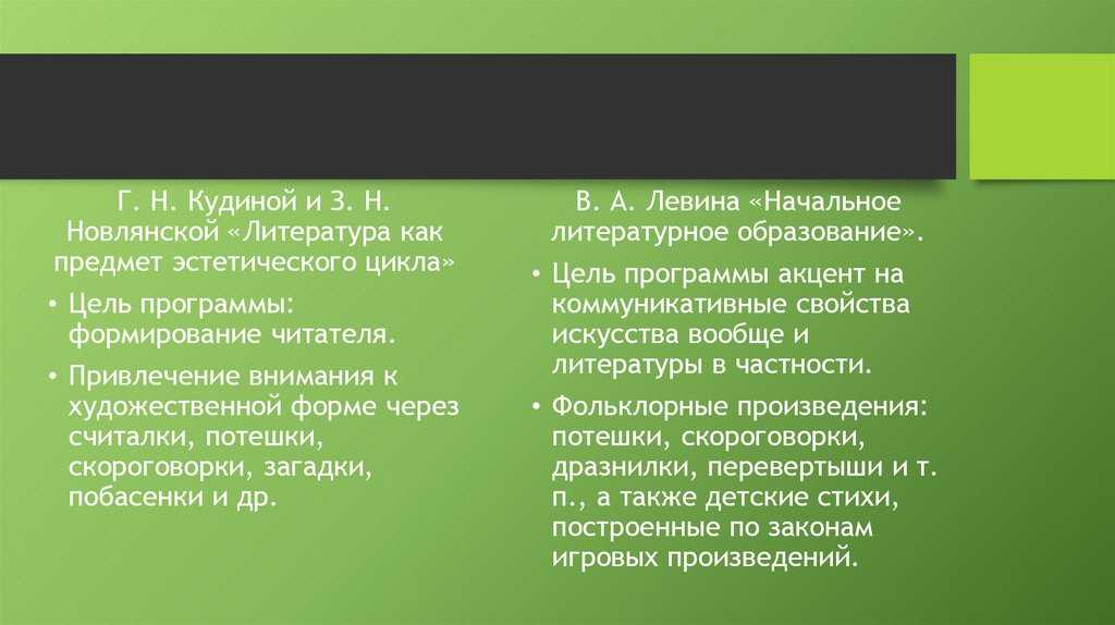 7. Г. Н. Кудиной и 3. Н. Новлянской «Литература как предмет эстетического цикла».