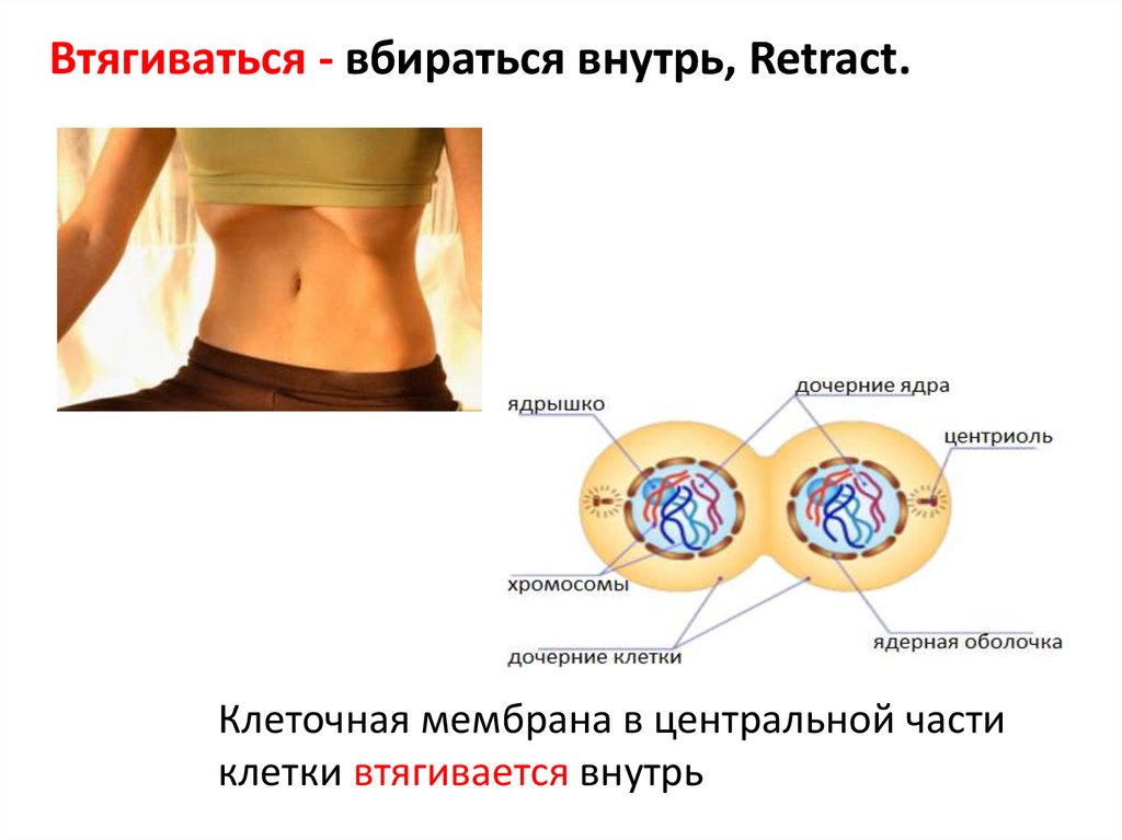 Втягиваться - вбираться внутрь, Retract.Клеточная мембрана в центральной части