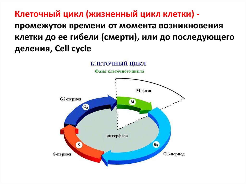 Клеточный цикл (жизненный цикл клетки) промежуток времени от момента возникновенияклетки до ее гибели (смерти), или до последующего