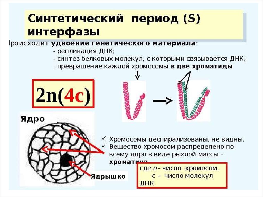 2. Синтетиеский (S), (6 – 10 часов)Репликация ДНК, 2n4с (двухроматидные