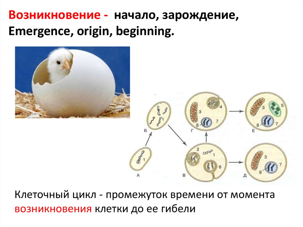 Возникновение - начало, зарождение,Emergence, origin, beginning.
