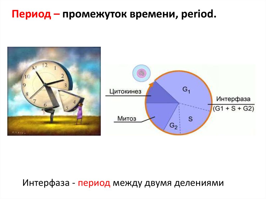 Период – промежуток времени, period.Интерфаза - период между двумя делениями
