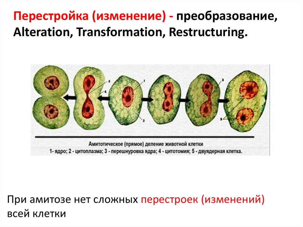 При амитозе нет сложных перестроек (изменений)