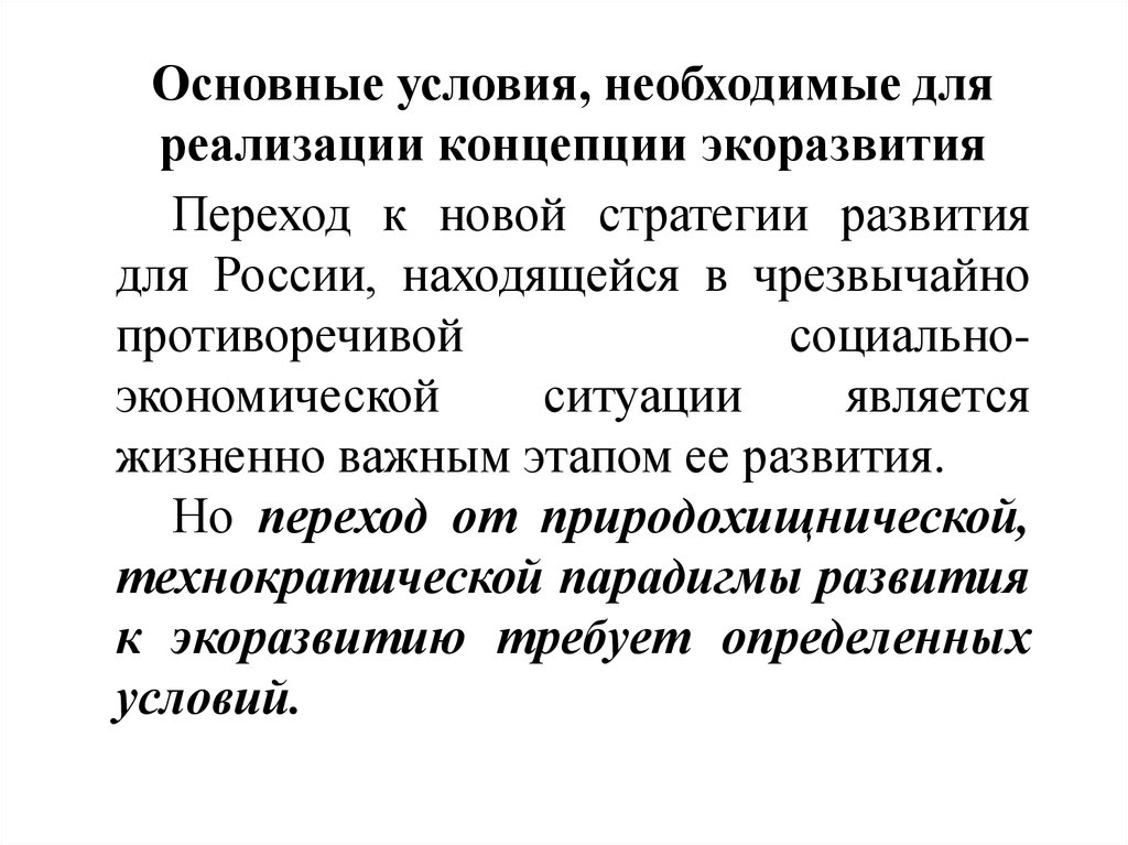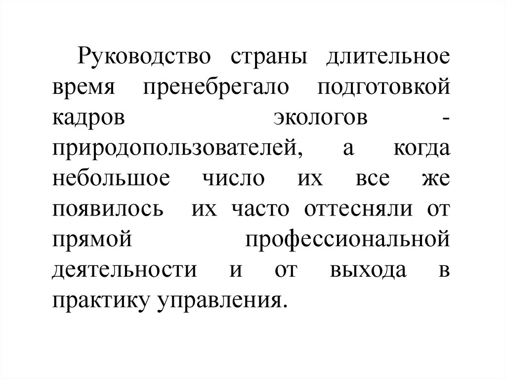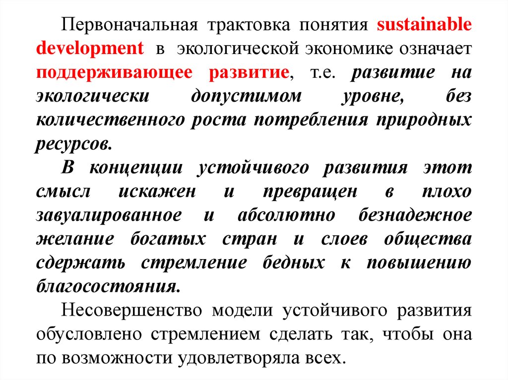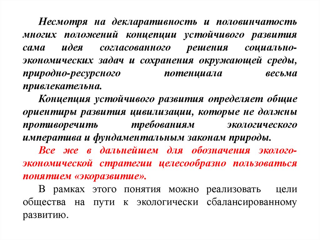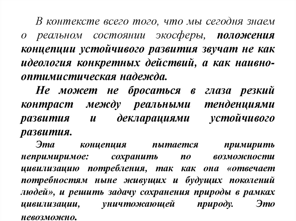 С самого начала было ясно, чтопрактическая реализация идеи экоразвития