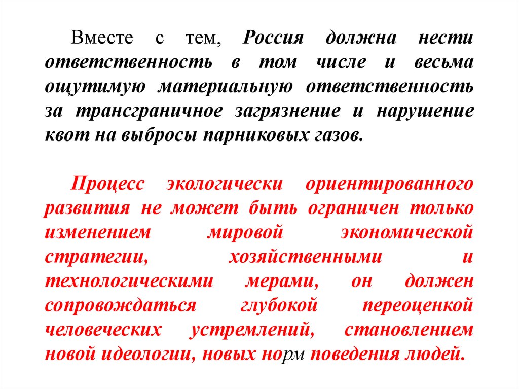 Вместе с тем, Россия должна нестиответственность в том числе и весьма