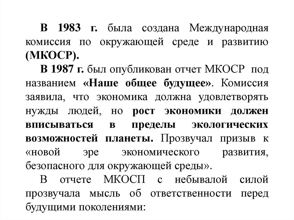 В 1983 г. была создана Международнаякомиссия по окружающей среде и развитию