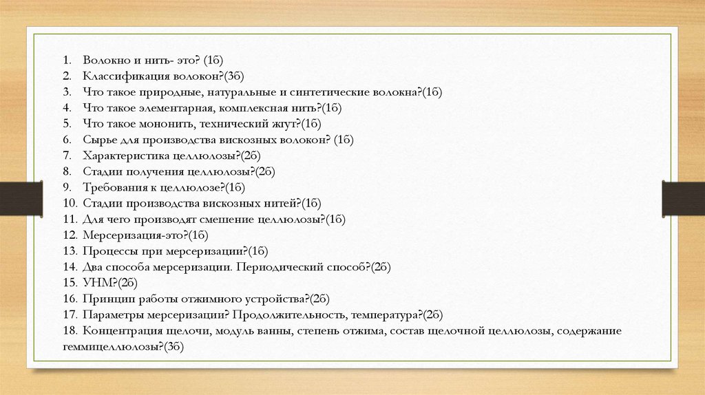 Вопросы семинара по теме: Производство вискозных нитей