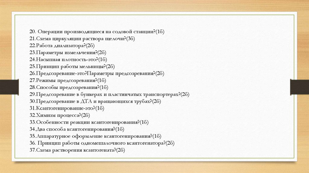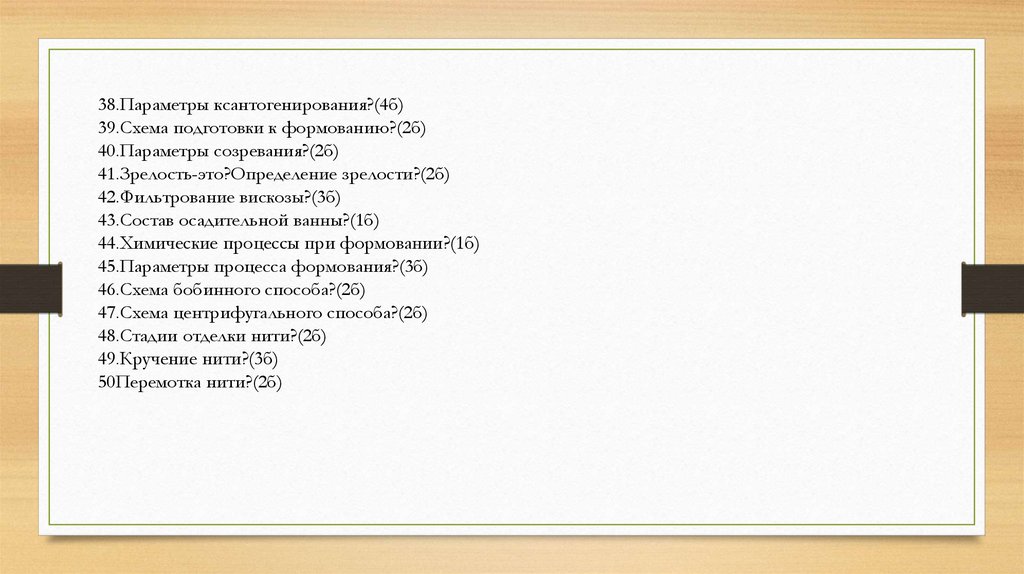 38.Параметры ксантогенирования?(4б)39.Схема подготовки к формованию?(2б)