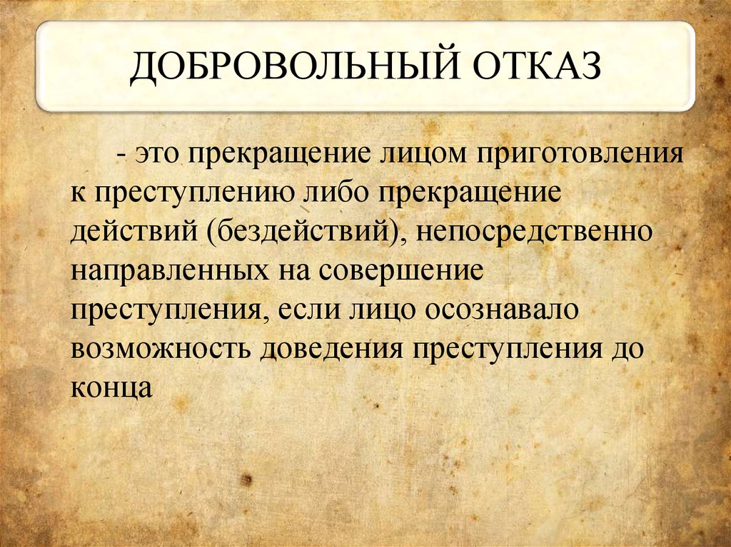 ДОБРОВОЛЬНЫЙ ОТКАЗ- это прекращение лицом приготовления