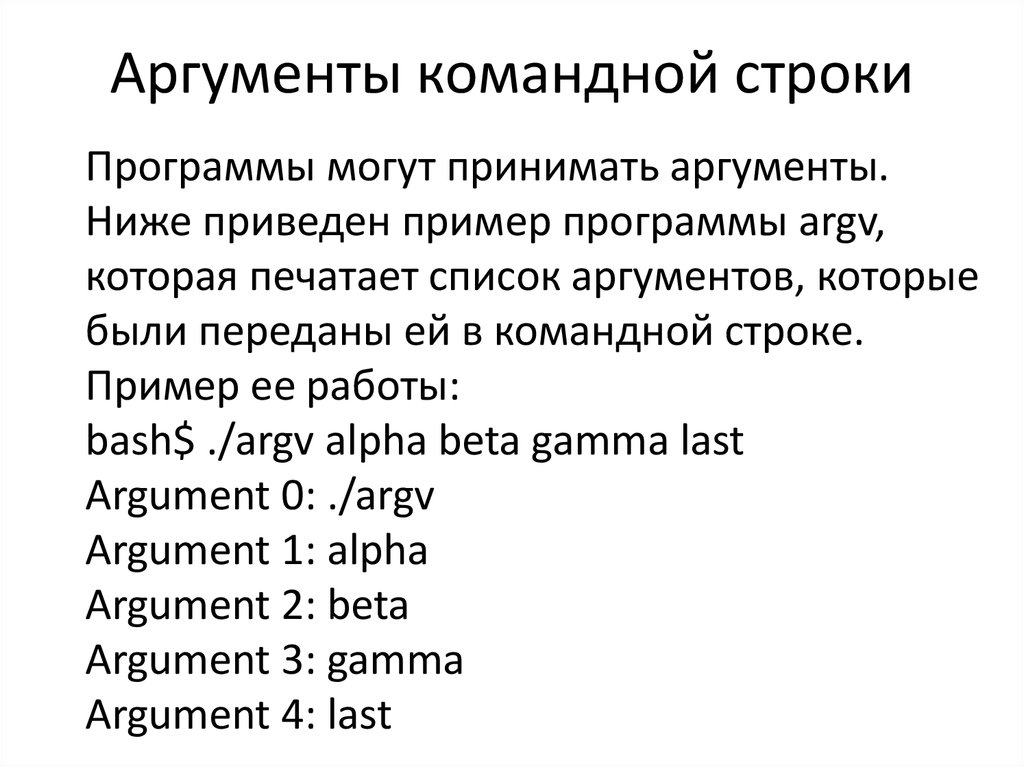 Аргументы командной строкиПрограммы могут принимать аргументы.