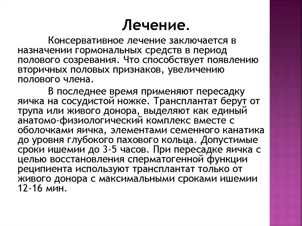 сроки ишемии до 3-5 часов. При пересадке яичка с