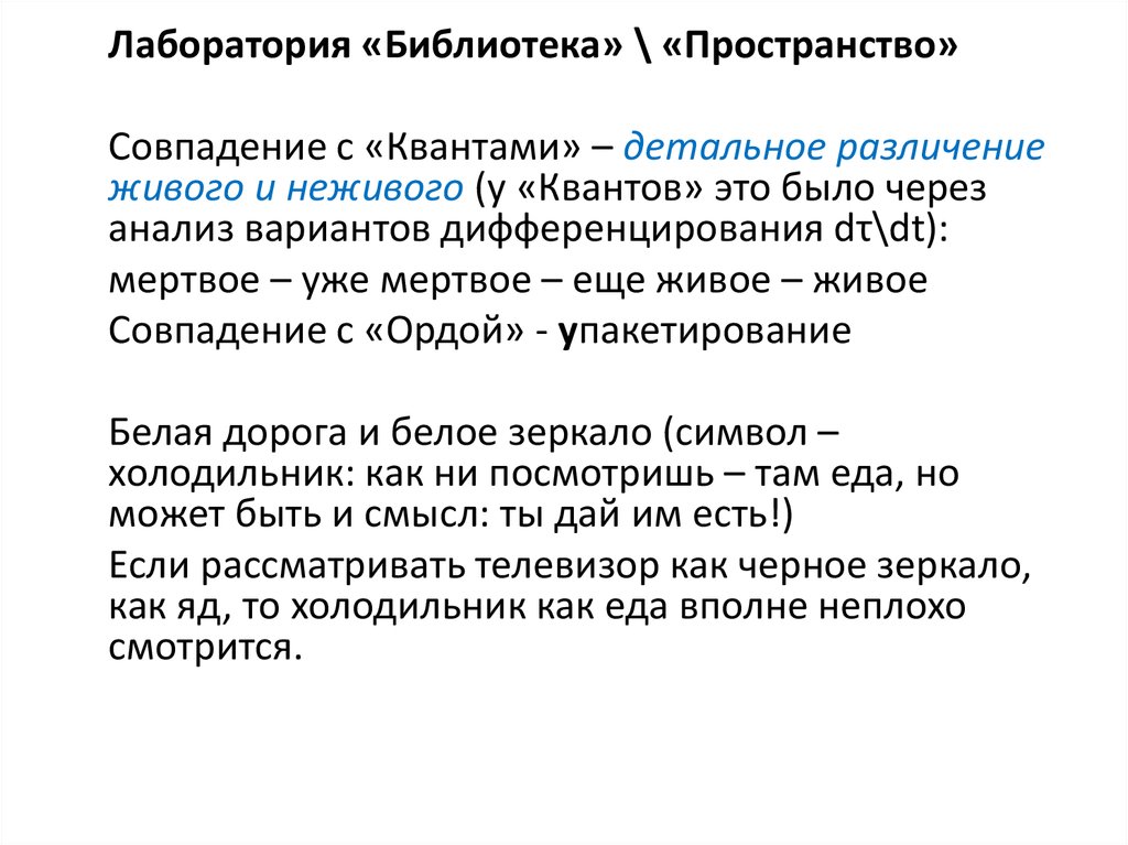Лаборатория «Библиотека» \ «Пространство»Совпадение с «Квантами» – детальное различение