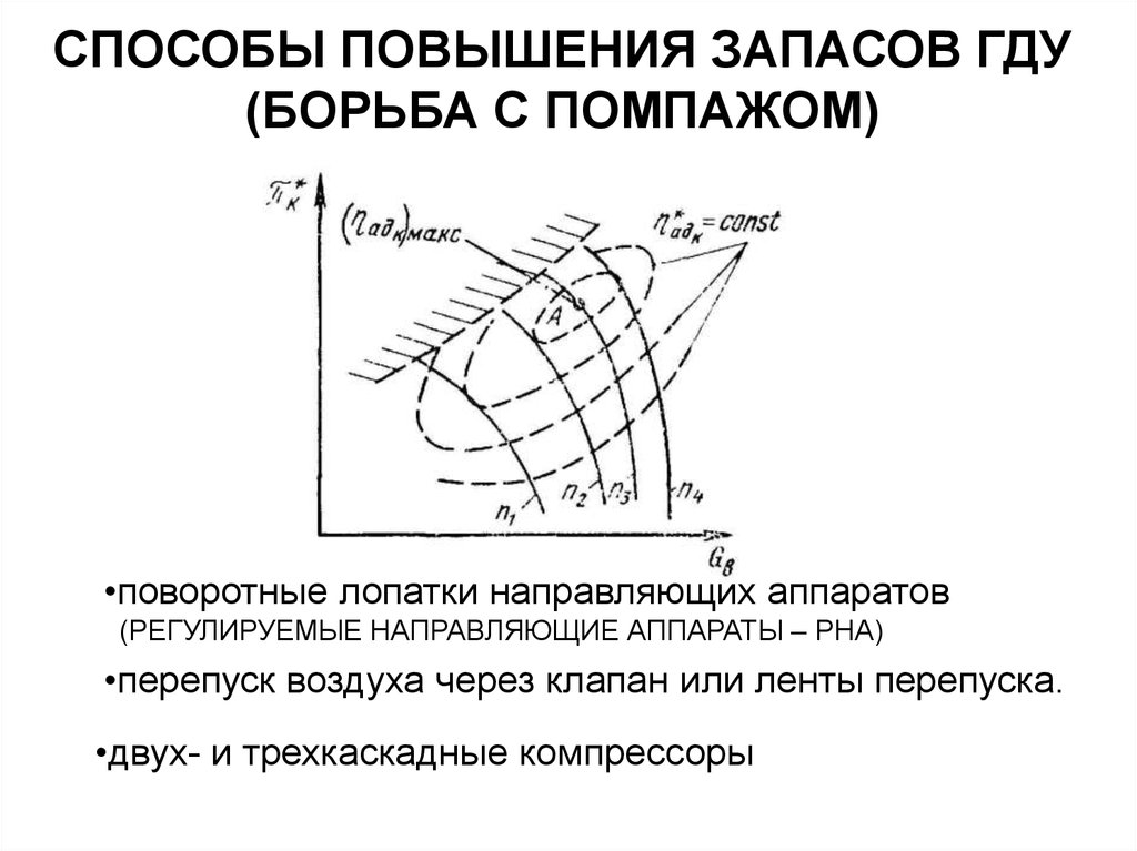 Помпаж возникает на нерасчетном режиме работы двигателя,