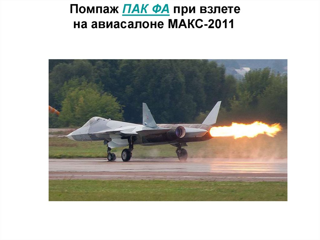 Помпаж ПАК ФА при взлетена авиасалоне МАКС-2011