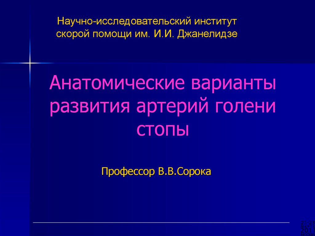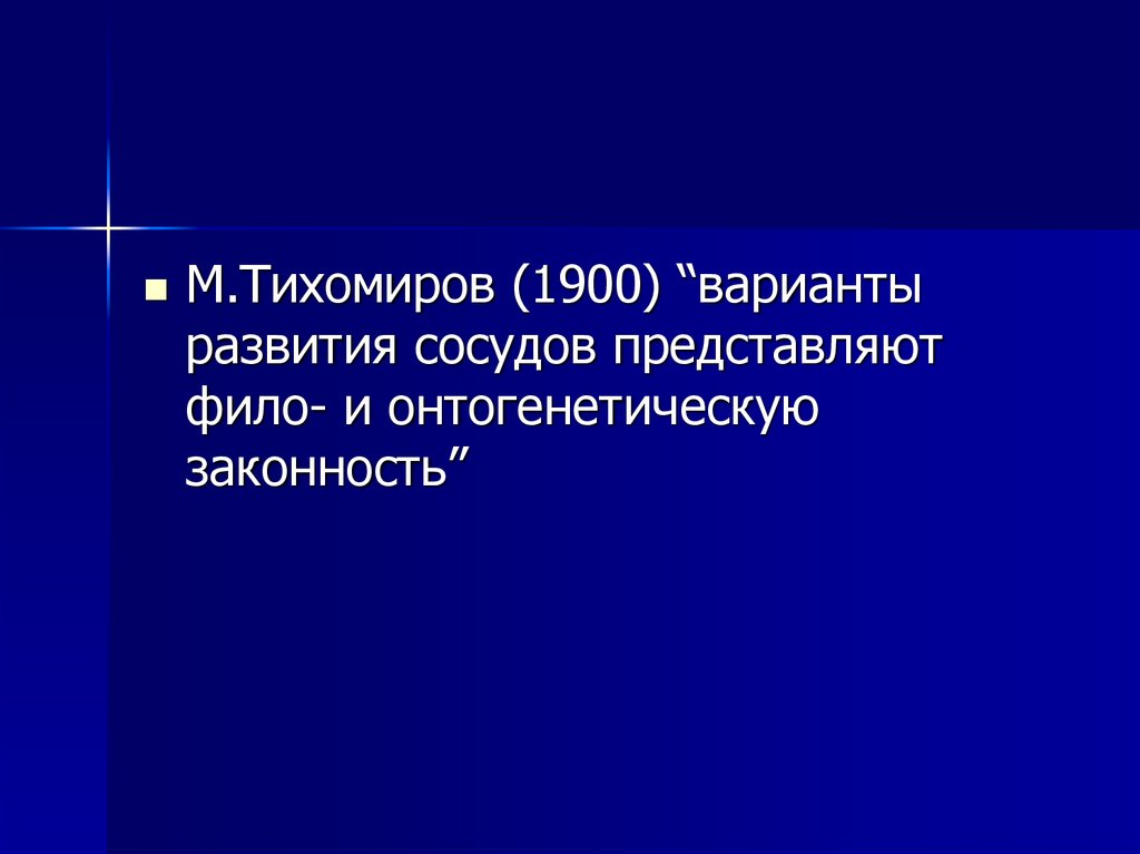 М.Тихомиров (1900) “вариантыразвития сосудов представляют