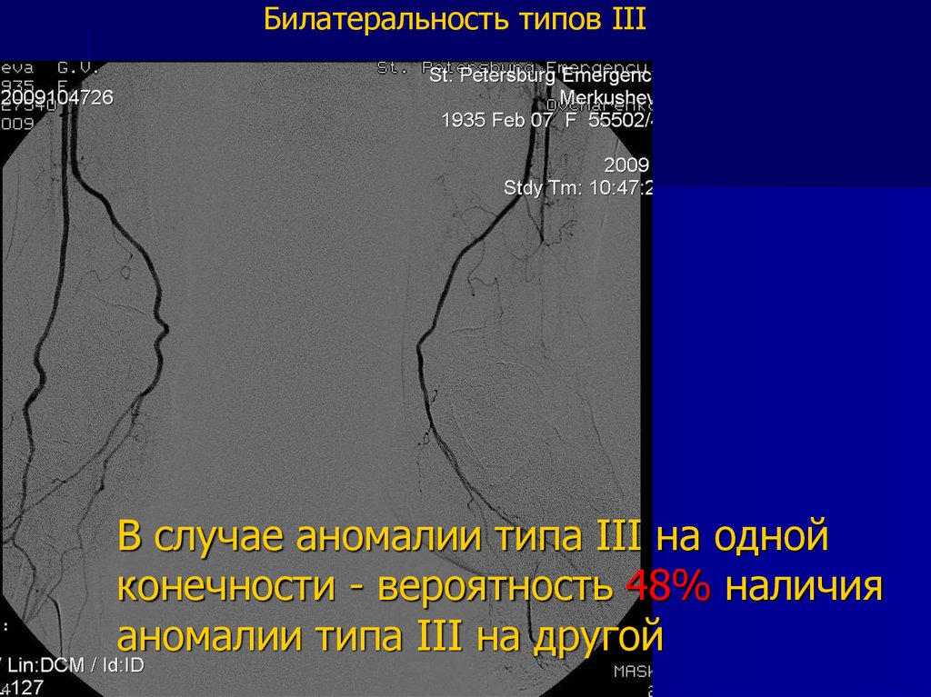 • В случае аномалии типа III на одной конечности вероятность 48% наличия аномалии типа III на