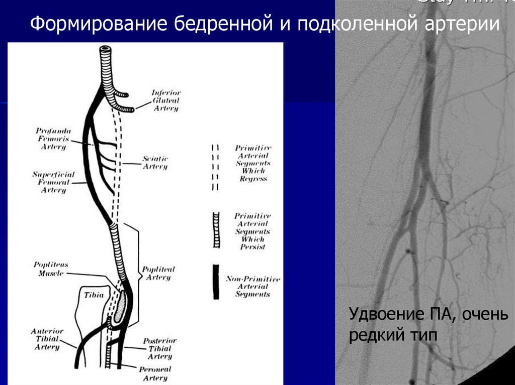 Формирование бедренной и подколенной артерииУдвоение ПА, очень