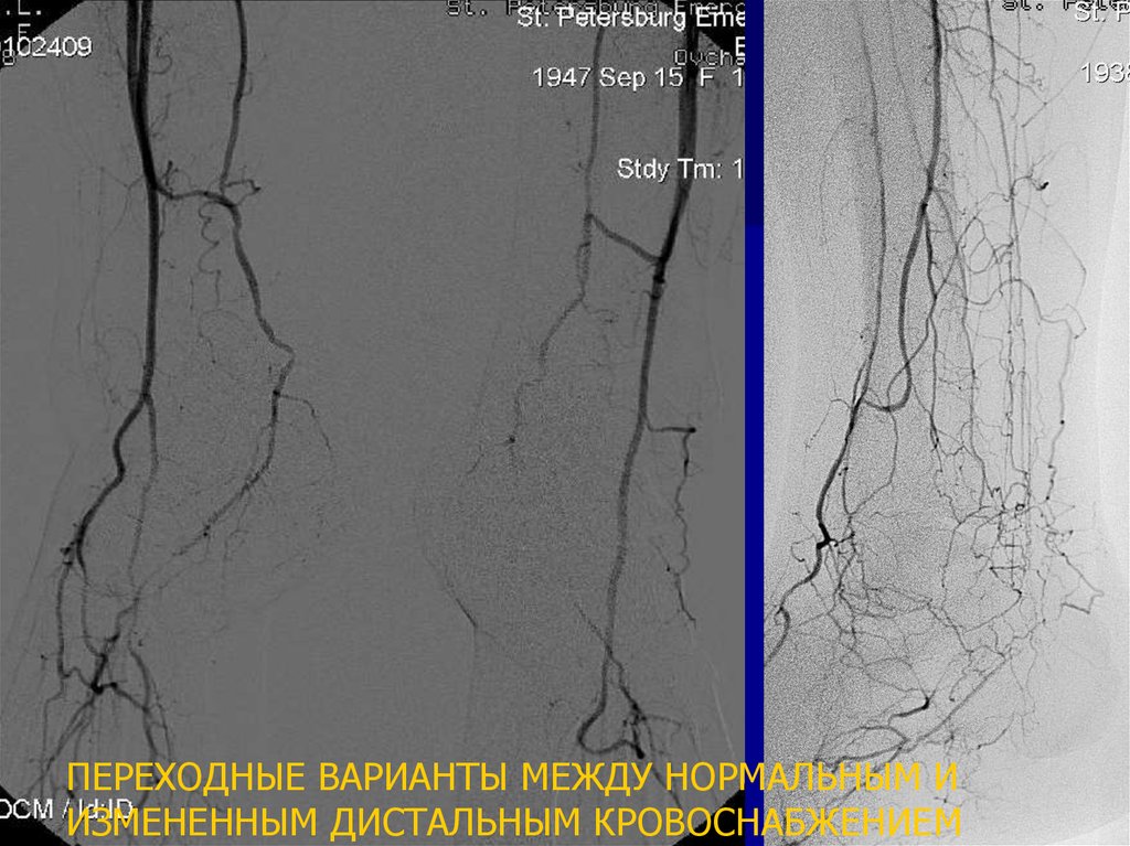 ПЕРЕХОДНЫЕ ВАРИАНТЫ МЕЖДУ НОРМАЛЬНЫМ ИИЗМЕНЕННЫМ ДИСТАЛЬНЫМ КРОВОСНАБЖЕНИЕМ