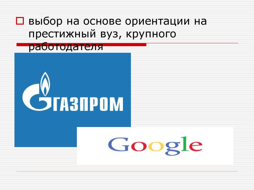 выбор на основе ориентации напрестижный вуз, крупного