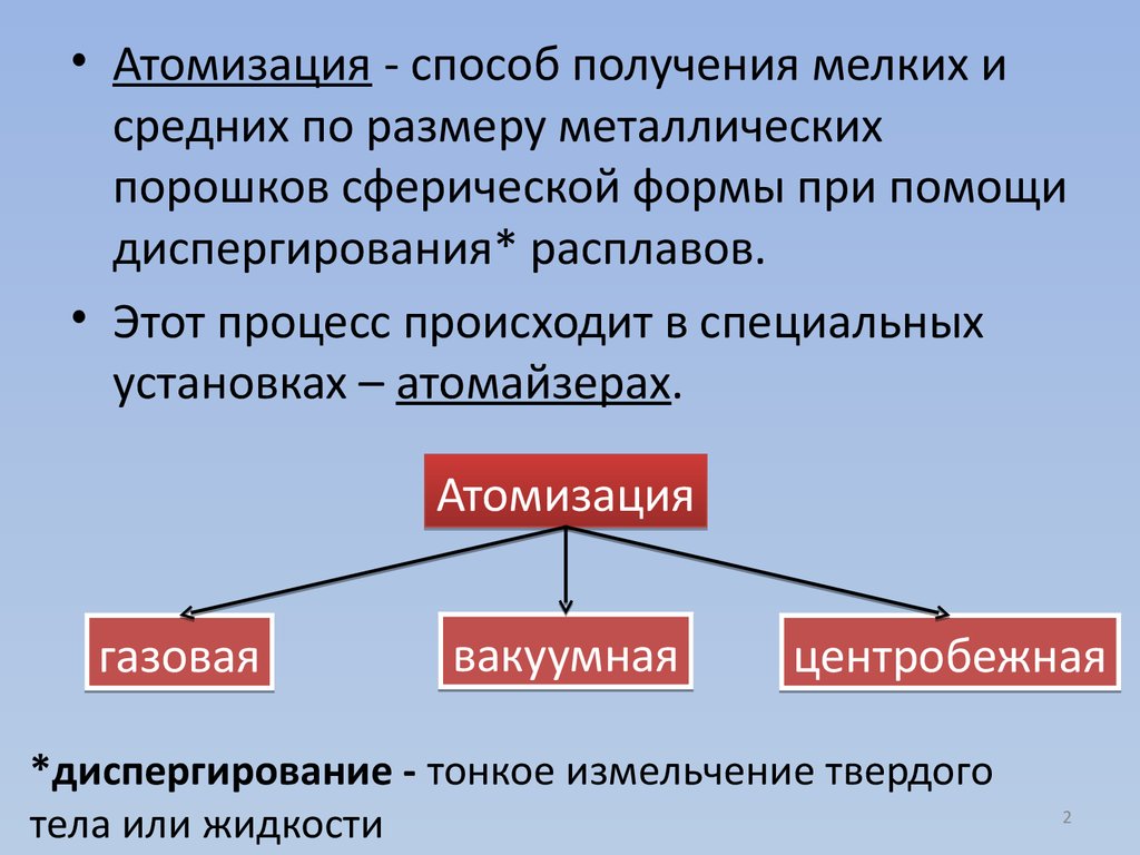 • Атомизация - способ получения мелких исредних по размеру металлических