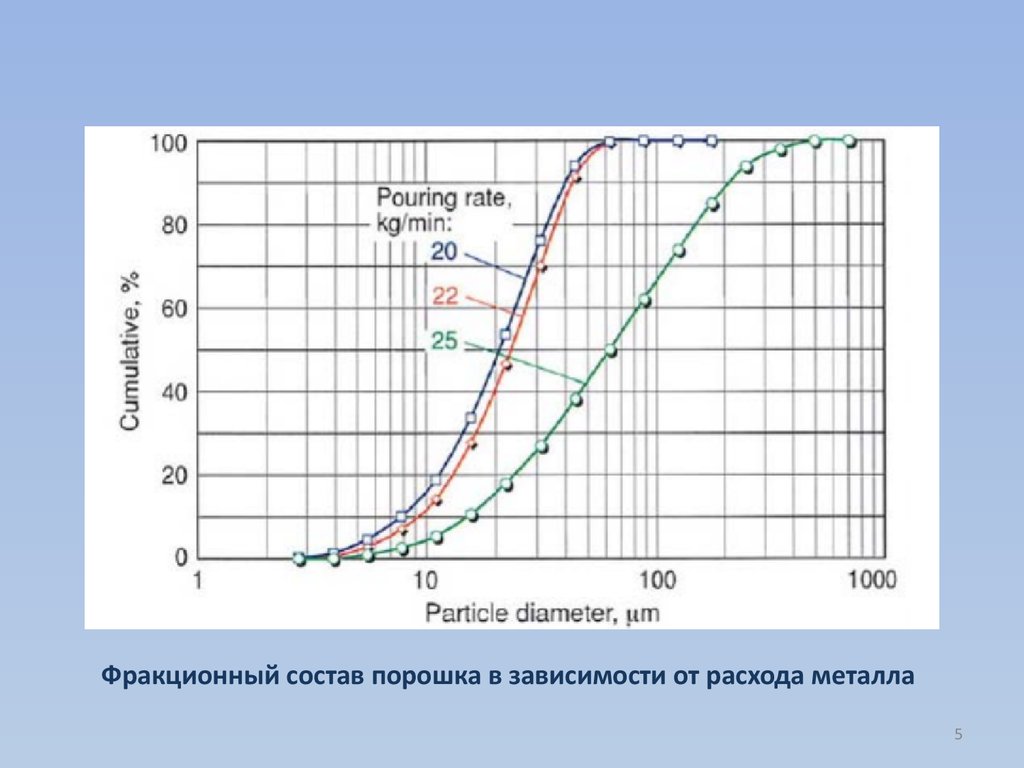 Фракционный состав порошка в зависимости от расхода металла5