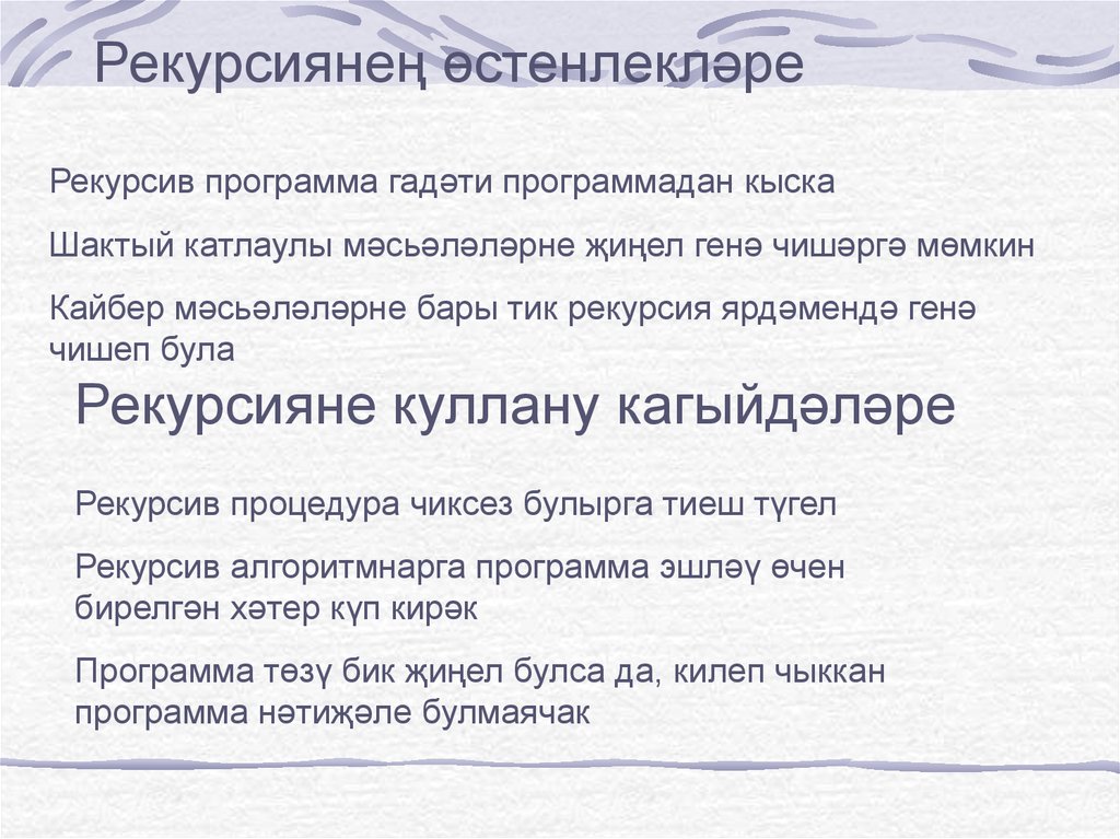 Рекурсиянең өстенлекләреРекурсив программа гадәти программадан кыска