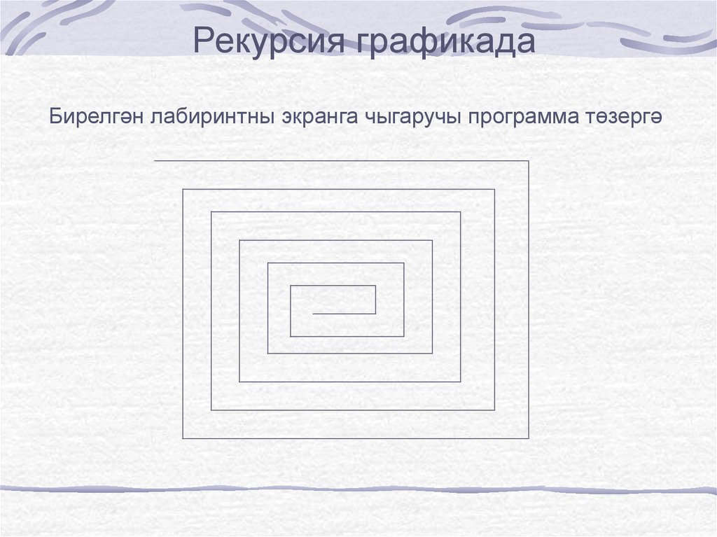Рекурсия графикадаБирелгән лабиринтны экранга чыгаручы программа төзергә