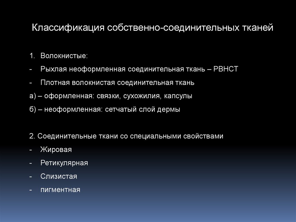 Классификация собственно-соединительных тканей1. Волокнистые: