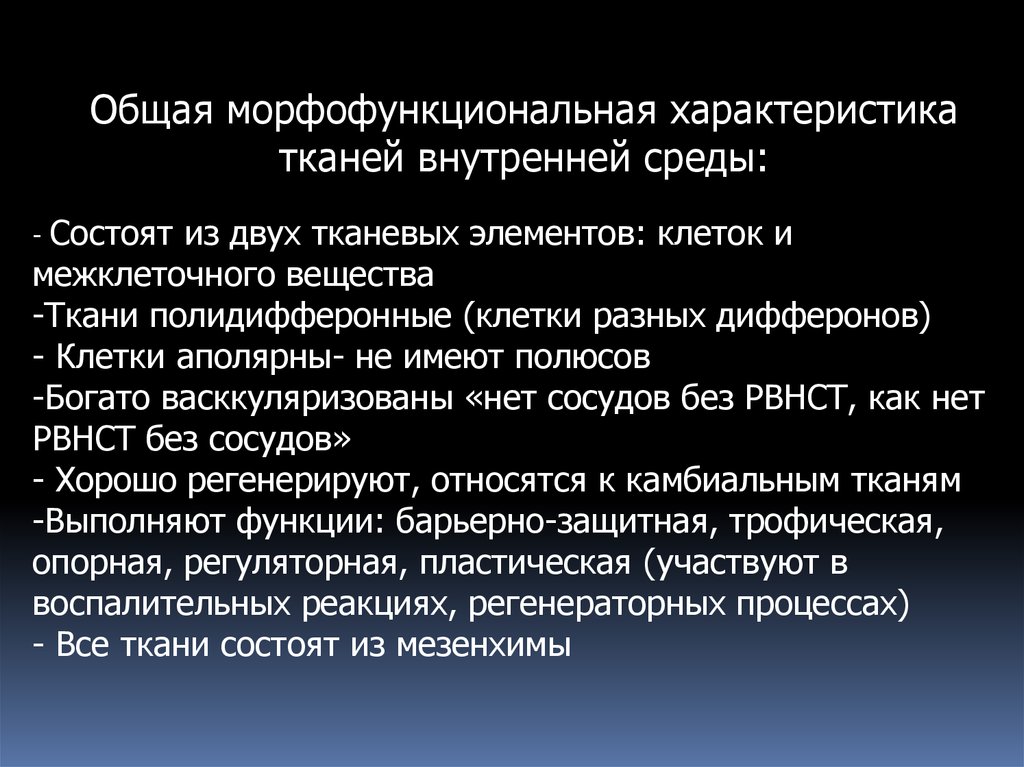 Общая морфофункциональная характеристикатканей внутренней среды: