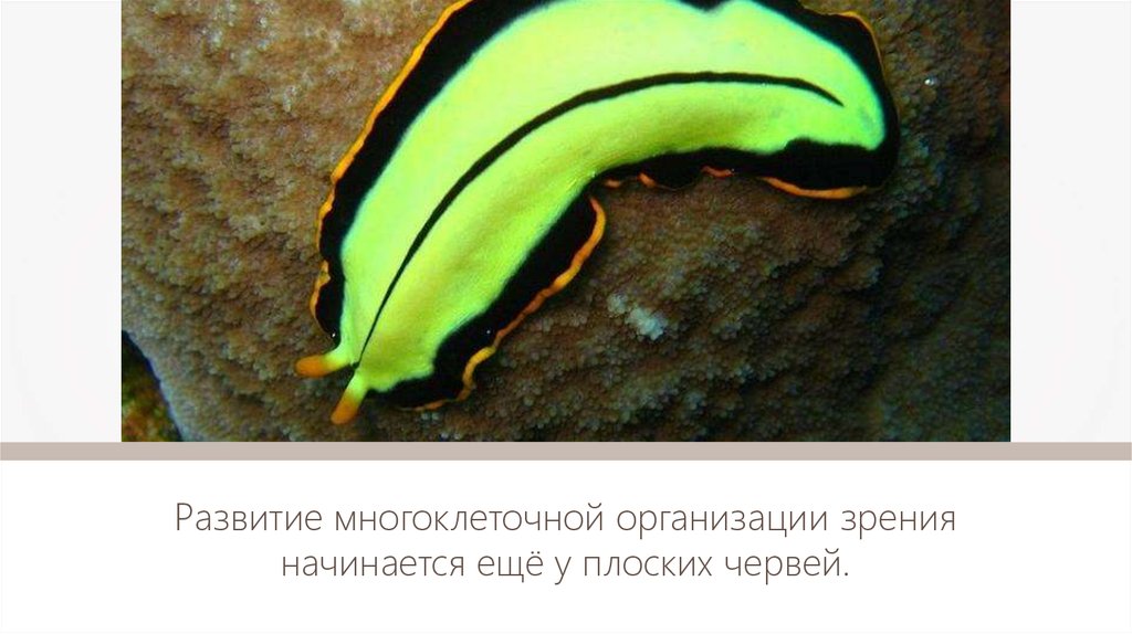 Развитие многоклеточной организации зренияначинается ещё у плоских червей.