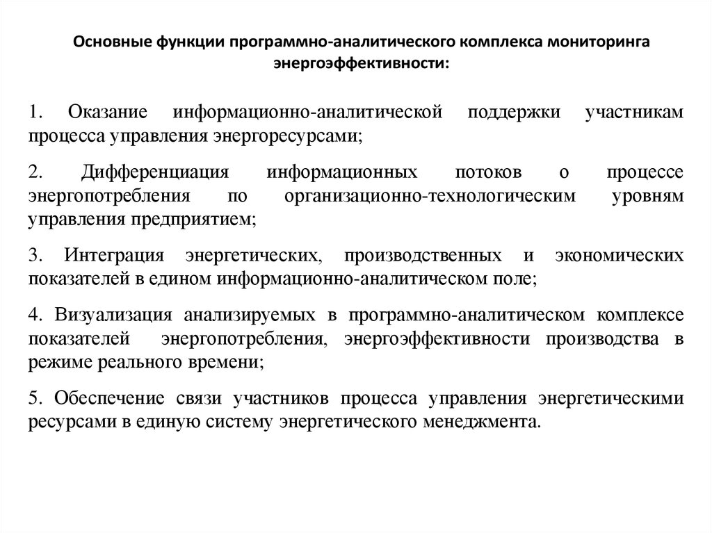 Основные функции программно-аналитического комплекса мониторингаэнергоэффективности: