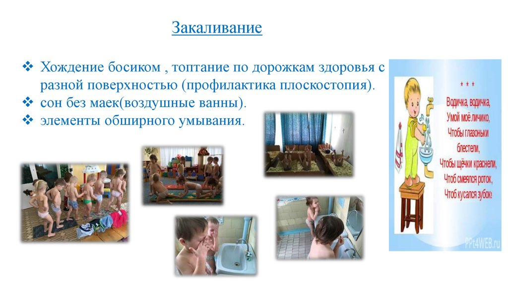 ЗакаливаниеХождение босиком , топтание по дорожкам здоровья с