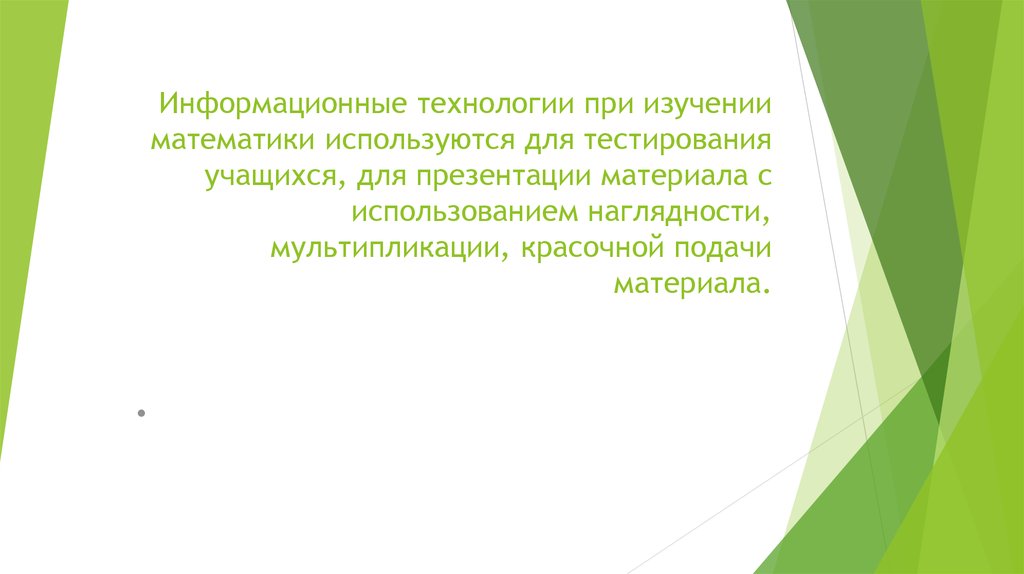 1. Информационные технологии при изучении математики используются для тестирования учащихся, для презентации материала с