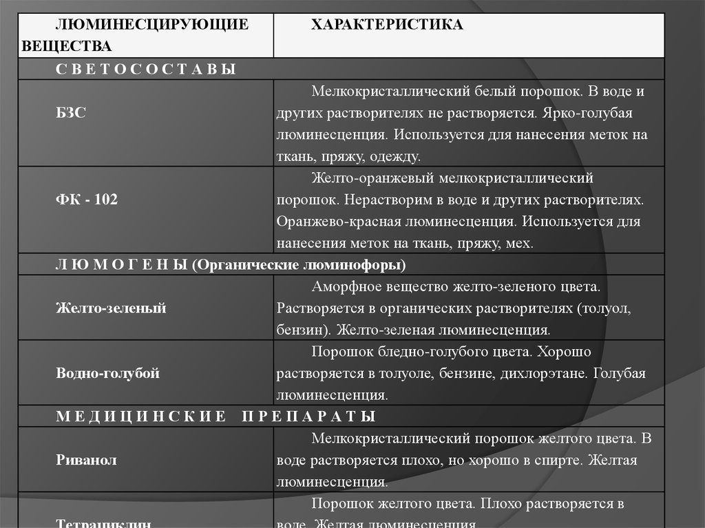 Люминофоры, возбуждаемые светом (фотолюминофоры).