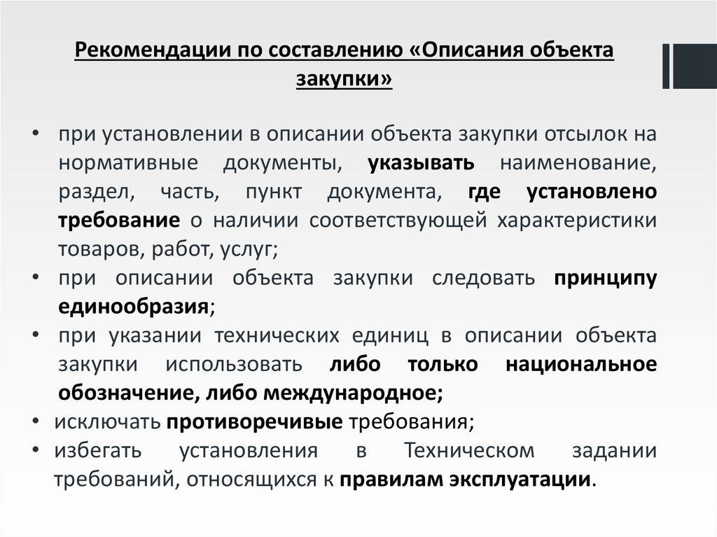 Рекомендуем сформировать описание объекта закупки в