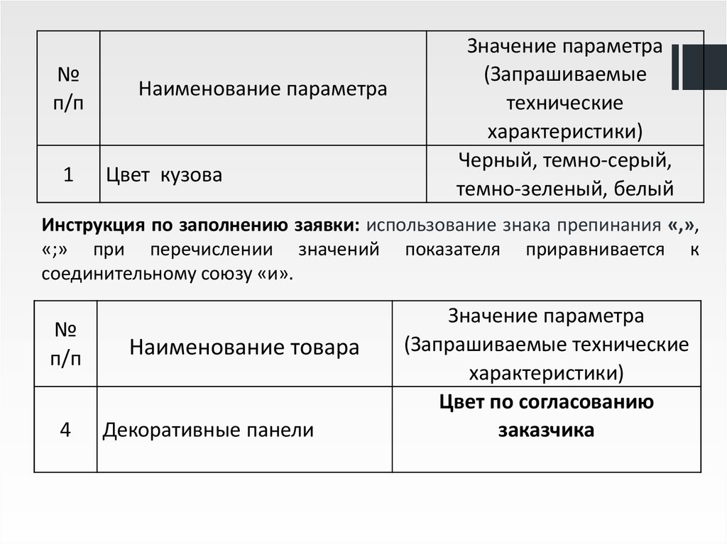 Инструкция по заполнению заявки: использование знака препинания «,»,