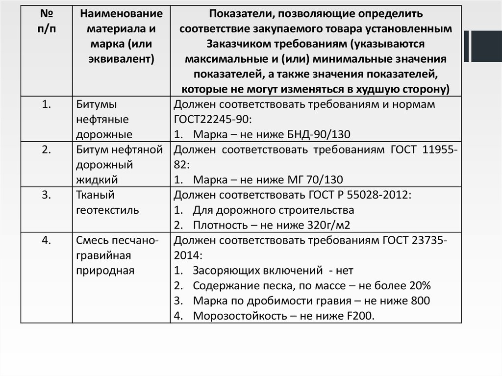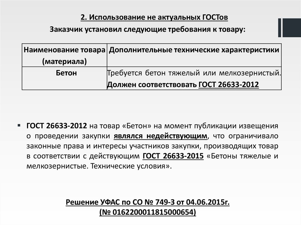 2. Использование не актуальных ГОСТовЗаказчик установил следующие требования к товару: