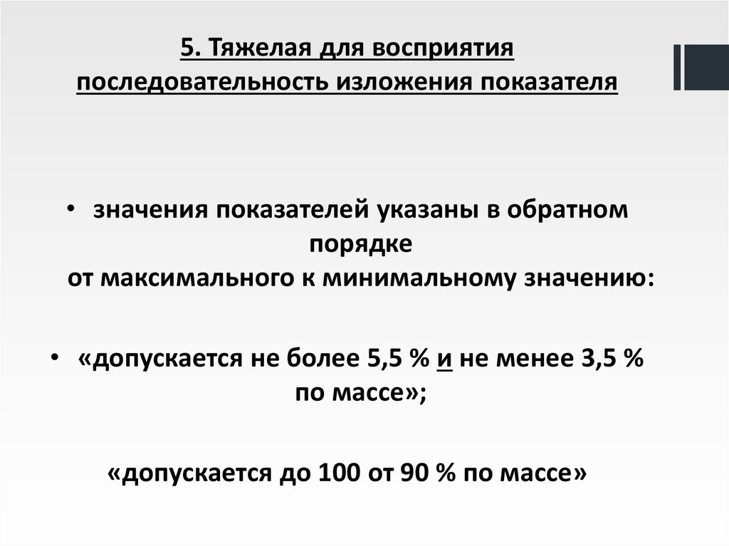5. Тяжелая для восприятияпоследовательность изложения показателя