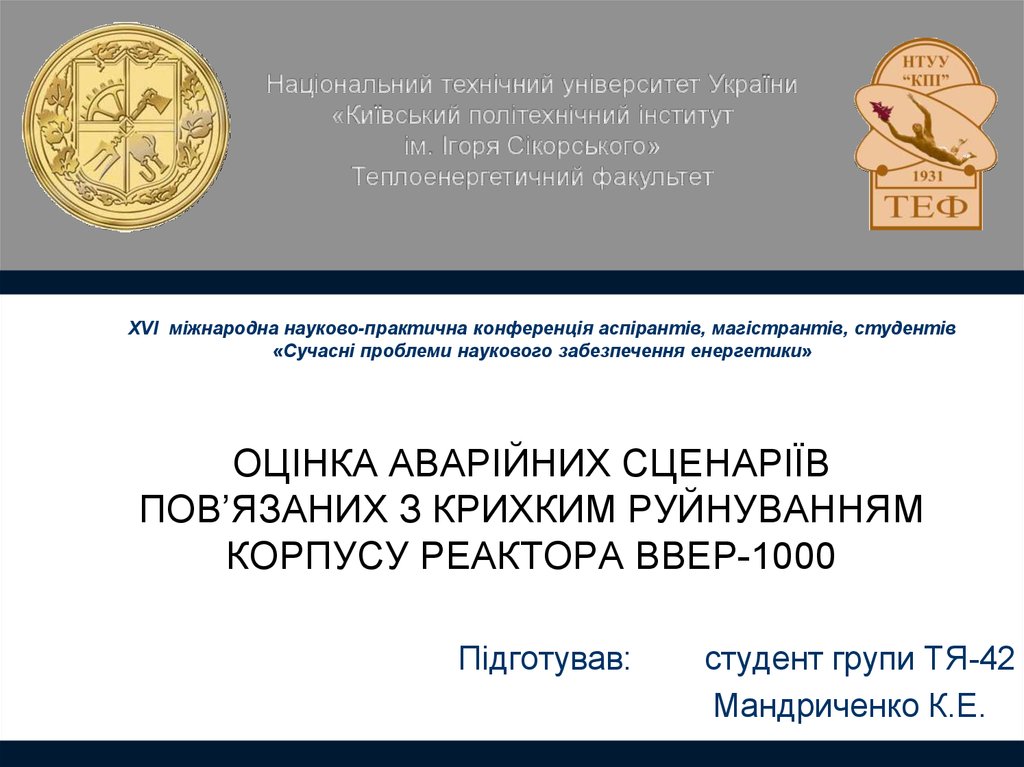 1. ОЦІНКА АВАРІЙНИХ СЦЕНАРІЇВ ПОВ’ЯЗАНИХ З КРИХКИМ РУЙНУВАННЯМ КОРПУСУ РЕАКТОРА ВВЕР-1000