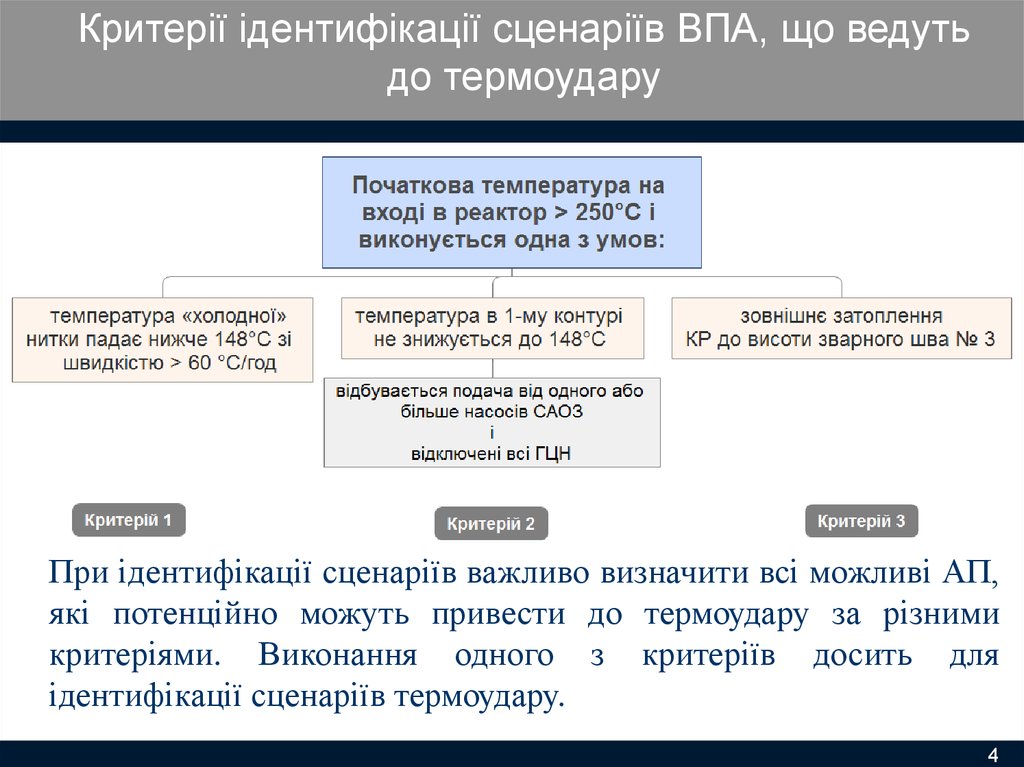 Критерії ідентифікації сценаріїв ВПА, що ведутьдо термоудару