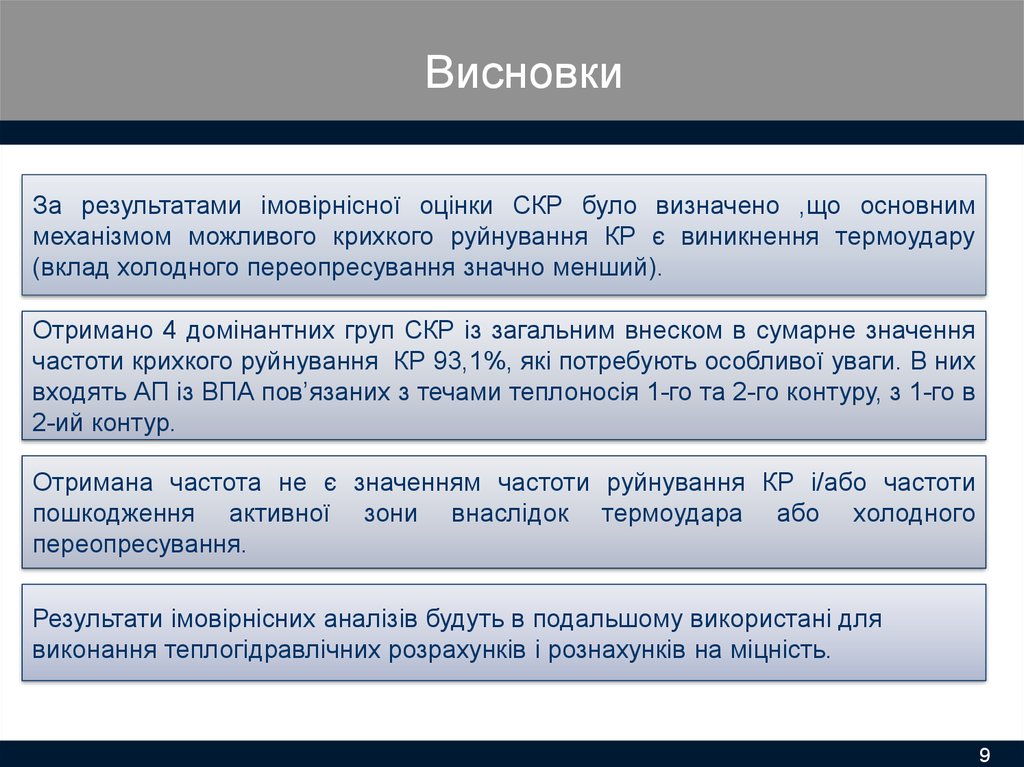 ВисновкиЗа результатами імовірнісної оцінки СКР було визначено ,що основним