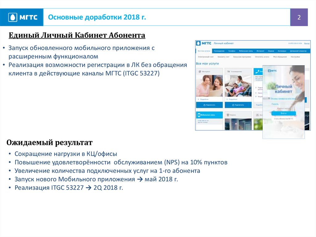 Основные доработки 2018 г.Единый Личный Кабинет Абонента