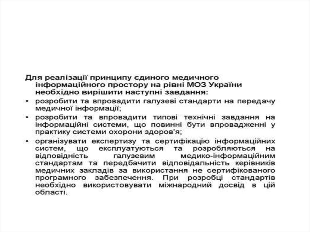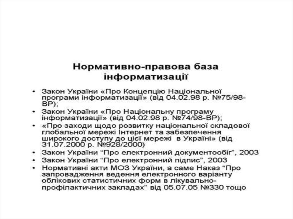 Концепція інформатизації галузі охорони здоров'я України. Основні напрямки