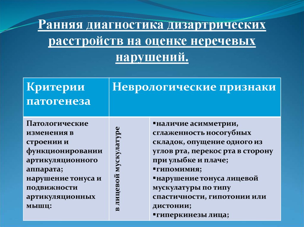 Ранняя диагностика дизартрическихрасстройств на оценке неречевых