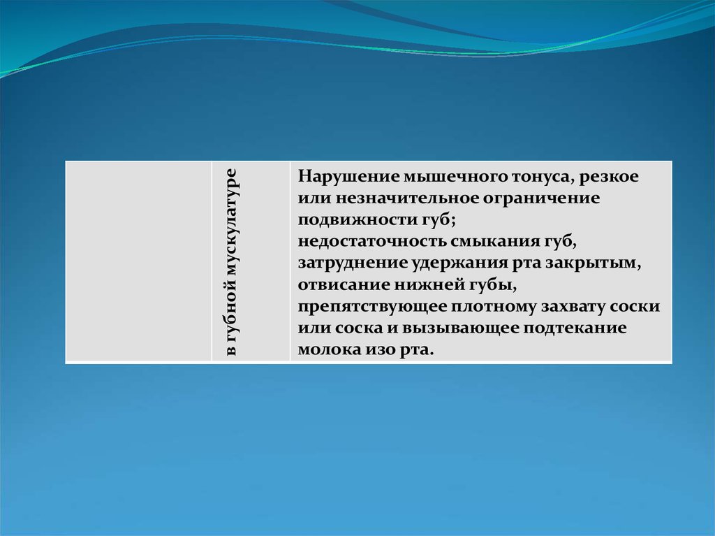 в губной мускулатуреНарушение мышечного тонуса, резкое